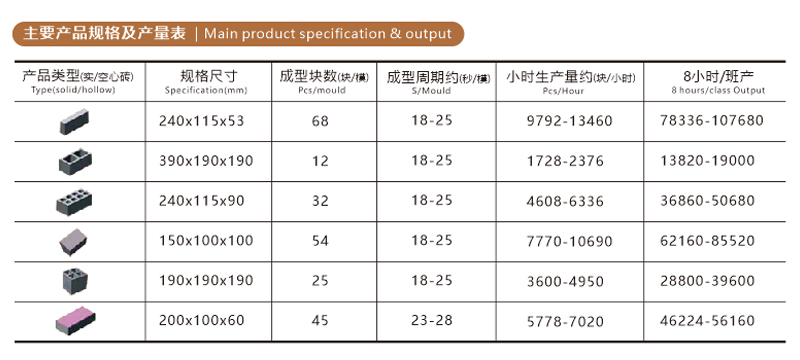 用途:生產(chǎn)各種外墻砌塊、內(nèi)墻砌塊、花墻砌塊、樓板塊、護(hù)堤塊、連鎖塊、路緣石等砌塊。增加面料裝置可生產(chǎn)彩色路面磚。